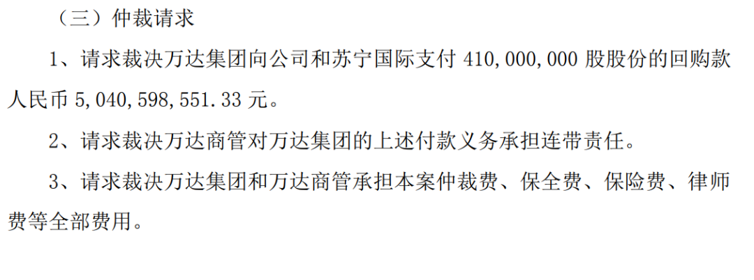苏宁易购要求万达集团支付50.4亿元股份回购款