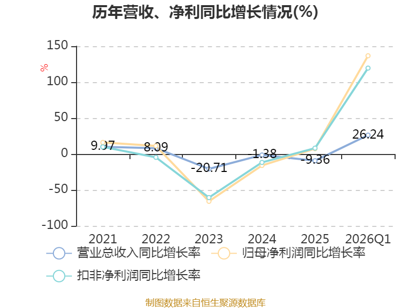 中证智能财讯朱老六(920726)4月17日泄漏2026年第一季度发扬。公司结束商业总收入7609.84万元,同比增长26.24%;归母净利润1904.6万元,同比增长136.70%;扣非净利润1719.88万元,同比增长119.53%;筹谋作为产生的现款流量净额为2026.88万元,同比下跌29.47%;发扬期内,朱老六基本每股收益为0.19元,加权平均净金钱收益率为4.23%。
